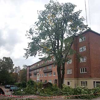 Ved trefelling benytter vi førsteklasses utstyr som sikrer området, hus - og ikke minst personer.